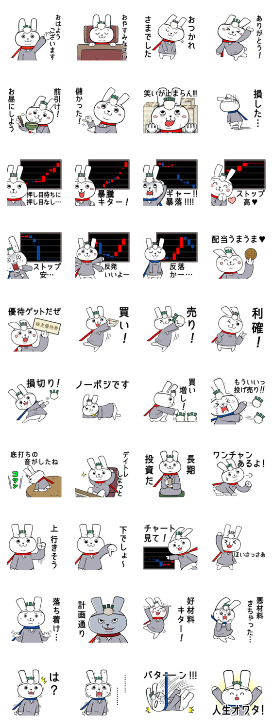 トレードを楽しむうさぎさん。 損益に応じて、マフラーの色が変わります。