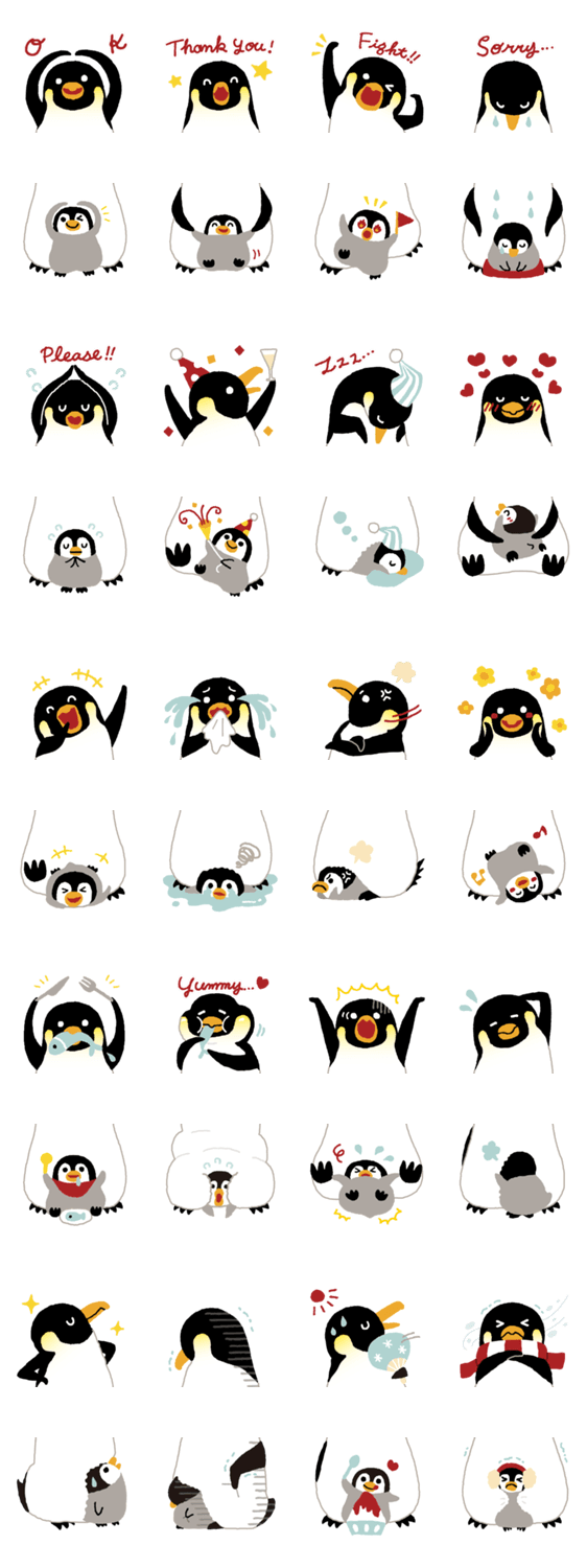 親ペンギンと子ペンギン、2つ合わせて使うとかわいいスタンプです。どれもつながるように出来ているので、自由な組み合わせを楽しんでね。単独で使ってももちろんOK!