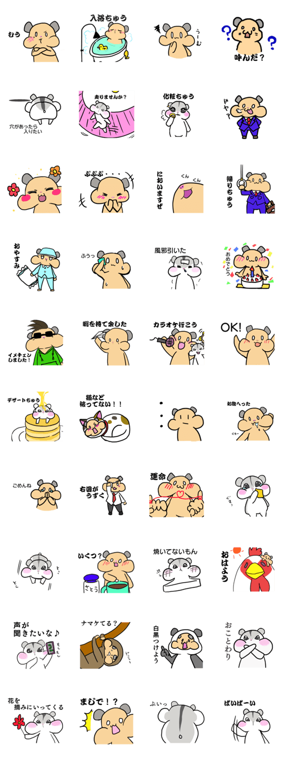 かわいいジャンガリアンハムスターと面白かっこいいキンクマハムスターの日常会話と人生で使ってみたい言葉のスタンプ