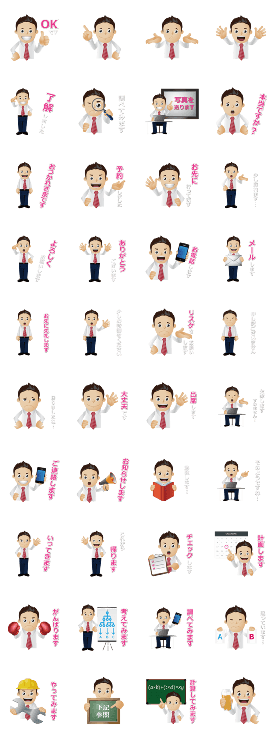ビジネスでLINEを使う方に利用していただけるひとことスタンプです。