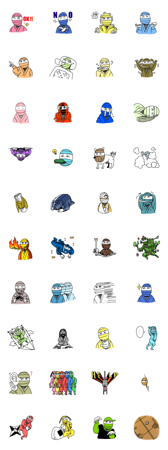 クールなニンジャたちがあなたのリアクションをサポートします。様々なシチュエーションに対応!クール忍者スタンプで差をつけよう!