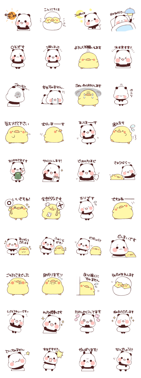 語でぱんだとひよこ。