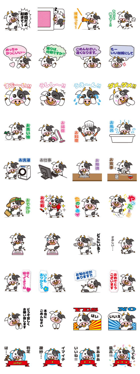 干支 丑(牛) 。ウシは、牧場にいる子供や女性にも人気の動物です。自分の大切な家族やパパ、身近なお友達との日常の会話にどうぞ。