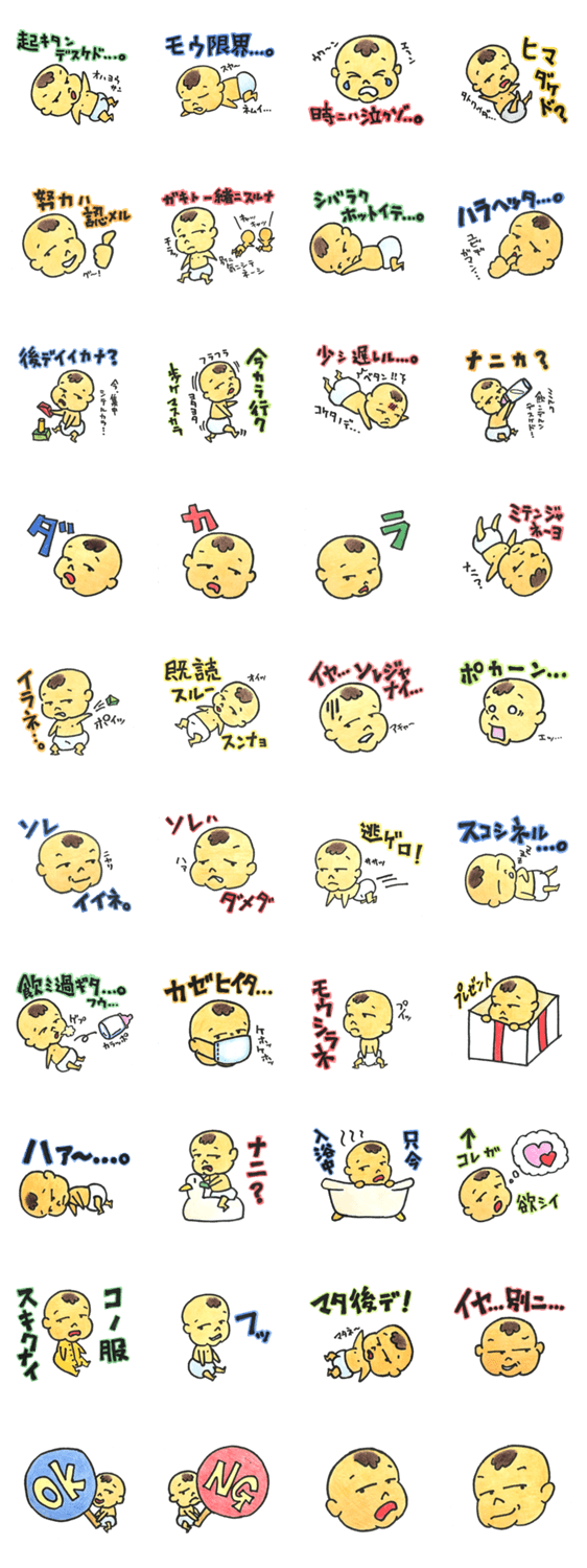 無愛想な赤ちゃんが少し生意気だけど憎めないスタンプです。