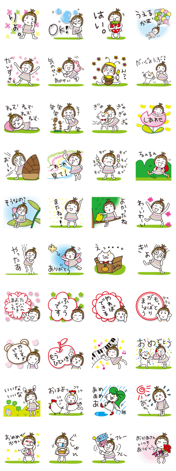 前髪ぱっつん(前髪パッツン)ストライプワンピの春服。春イベントのイースター、桜、花見、こいのぼり、母の日、花粉症、誕生日も。シマ子・トメ子ちゃんのお友達。