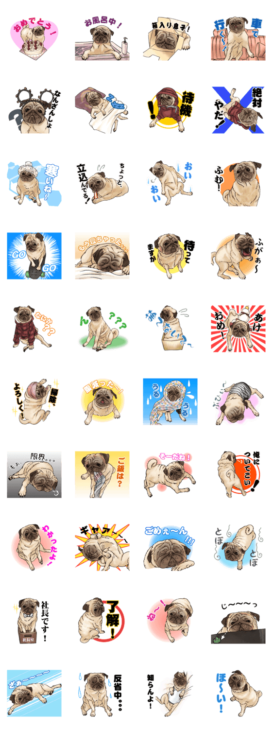 株式会社オギクボマンの社長君(パグ♂ 2012.3.8)がついにスタンプになったよ!