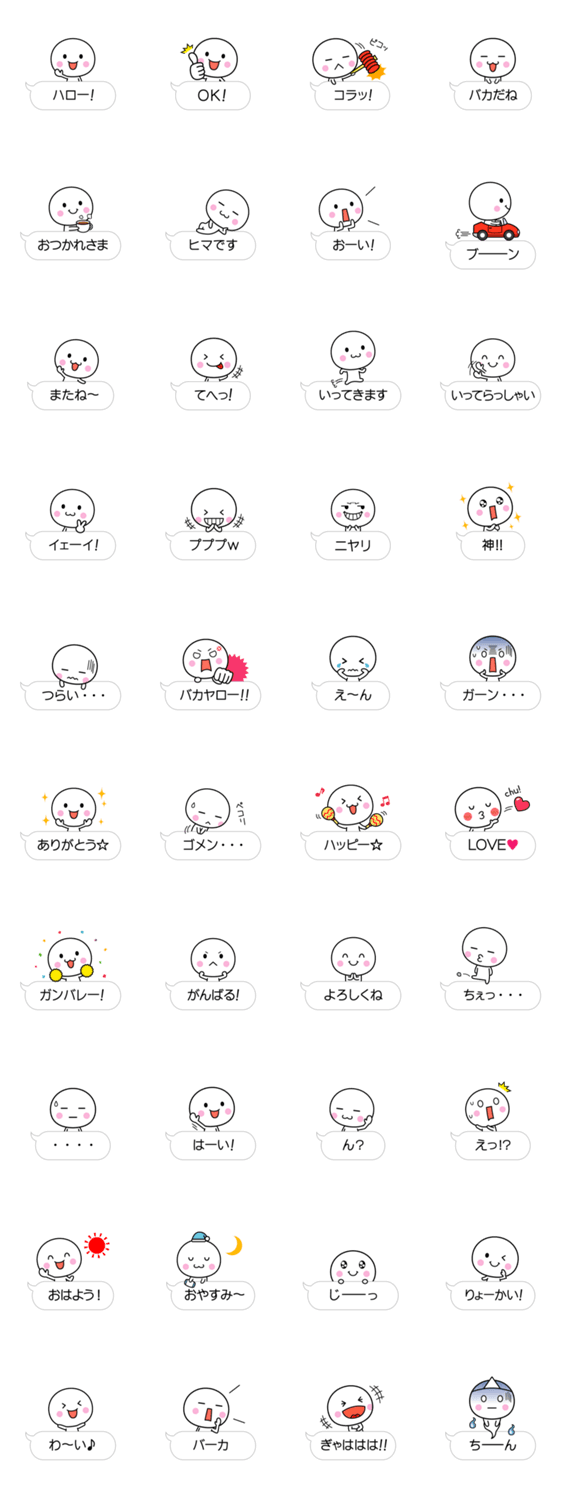 白いやつ番外編・吹き出しバージョン。いつでも、どんな場面でも使いやすいスタンプです。