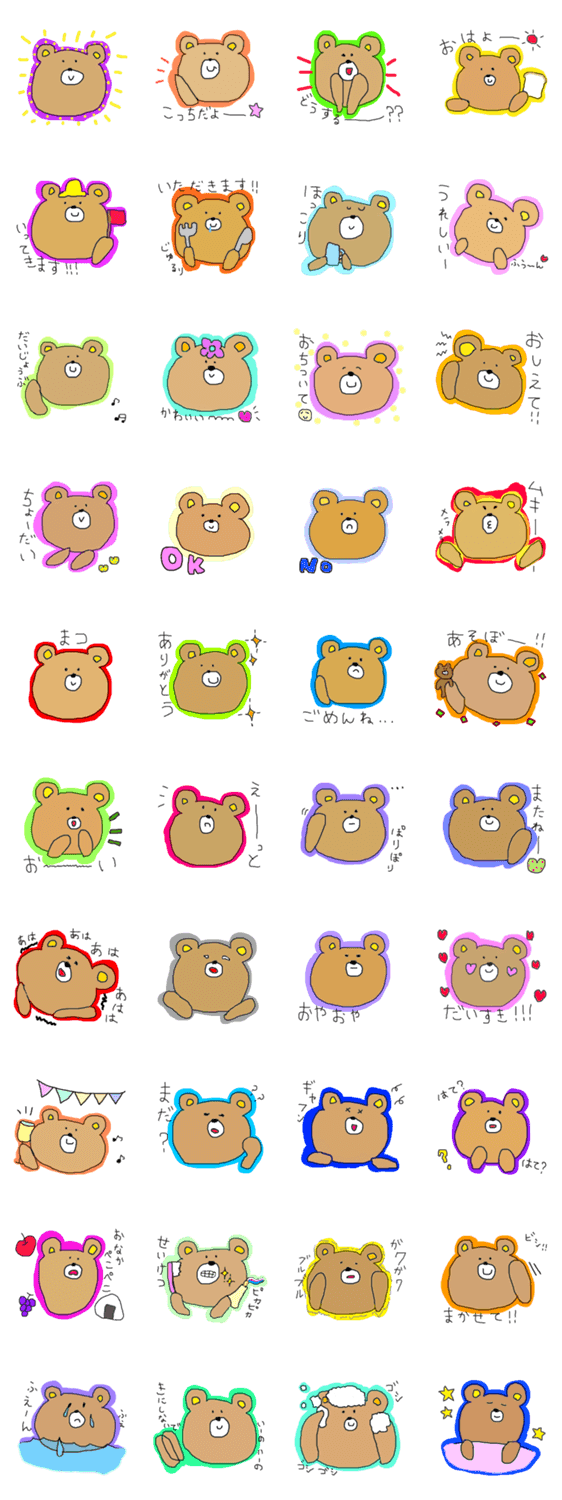 かわいいくまちゃんのスタンプ。毎日使えるカラフルで楽しいくまちゃん★