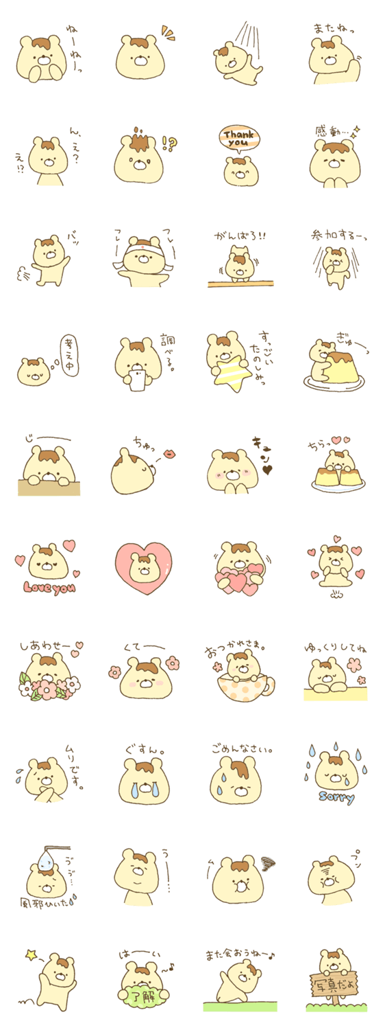 プリン好きクマさんのスタンプ2♡今回もゆるーく おいしそうに、使いやすい♪