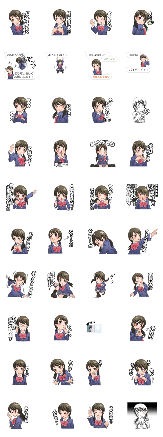 入学,新学期,クラス替え,など出会いの季節に使えそうなものをそろえた制服女子学生スタンプです。友達,同級生,部活の先輩後輩,先生まで丸っと巻き込んで楽しい学校生活を!