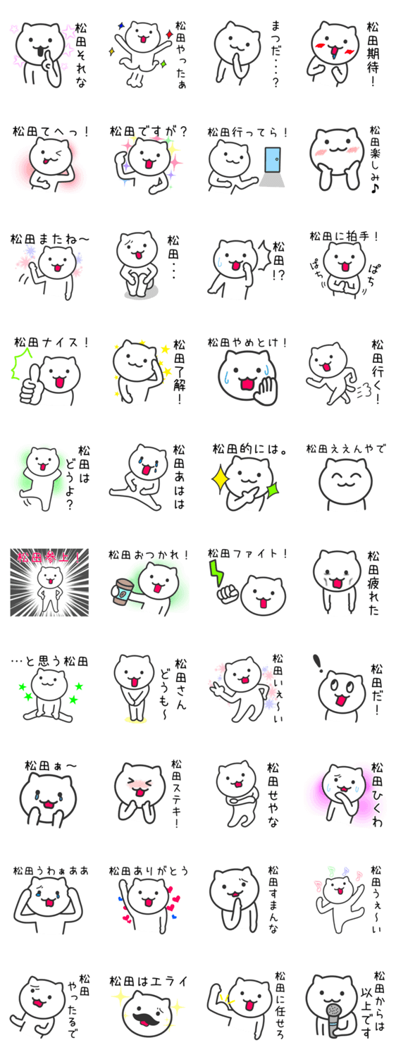 名前が松田(まつだ)さん専用のネコです。松田さん本人が使っても、松田さんに対して使ってもOKです。
