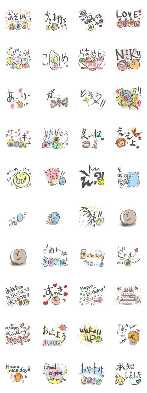 丸いのが変装したりして思いを伝えるスタンプにしたくて作りました。まとまりに欠けますが、お友達やご家族との交流にお役立てください。