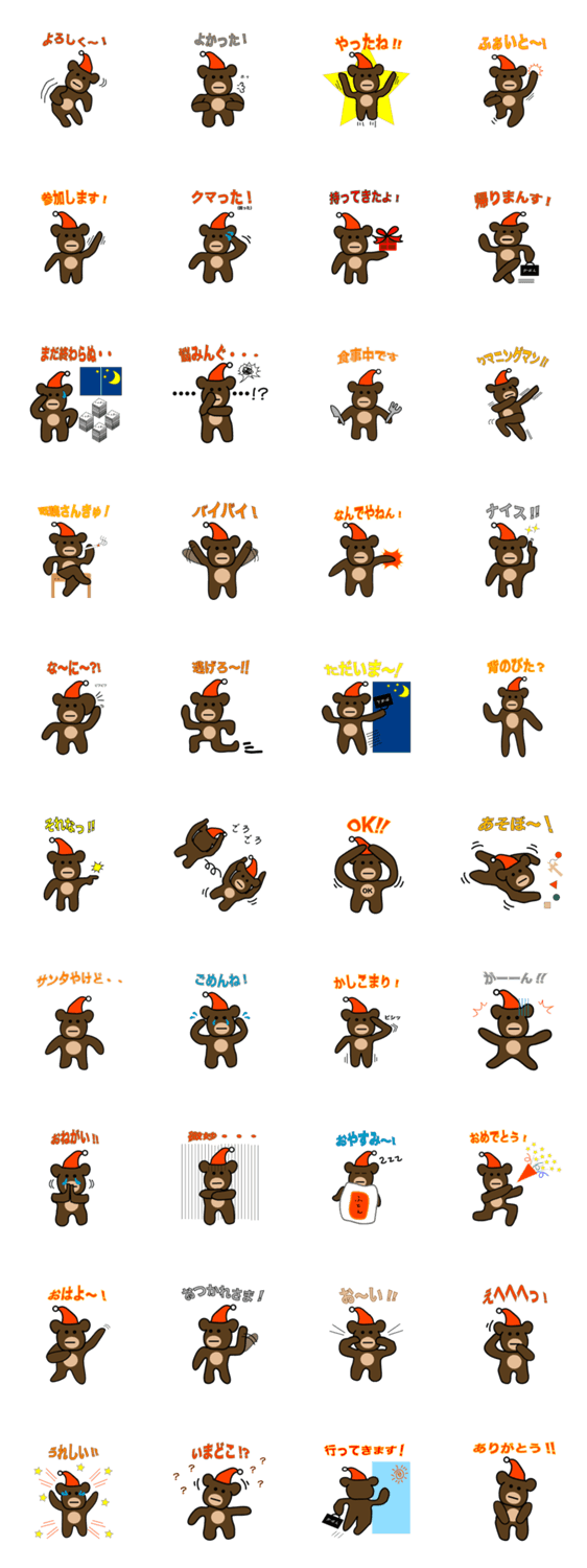 本人はサンタだと思い込んでいるが、実際はクマだ。自由自在に体の大きさを変化できる特徴を持つ。基本無表情です。微妙な表情の変化に気付けるかな??