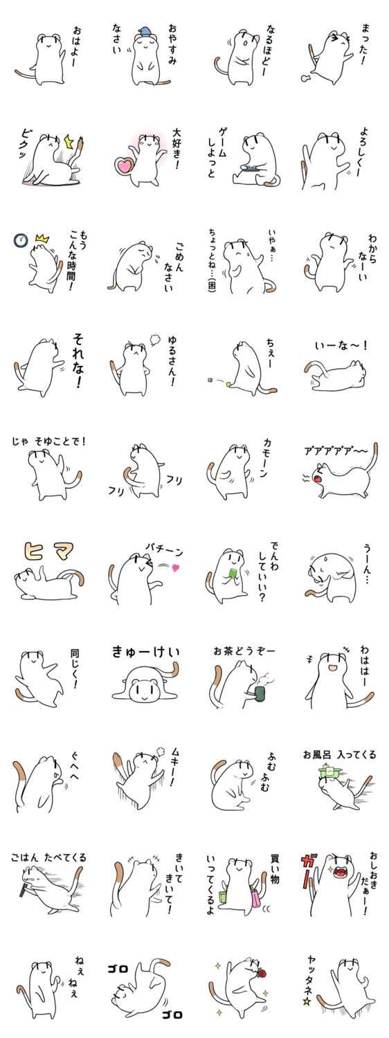 しろくてながい、愛嬌溢れるオコジョさんのスタンプです。 会話向けのメッセージを選んでいるので、日々つかうのにきっと便利ですよ。