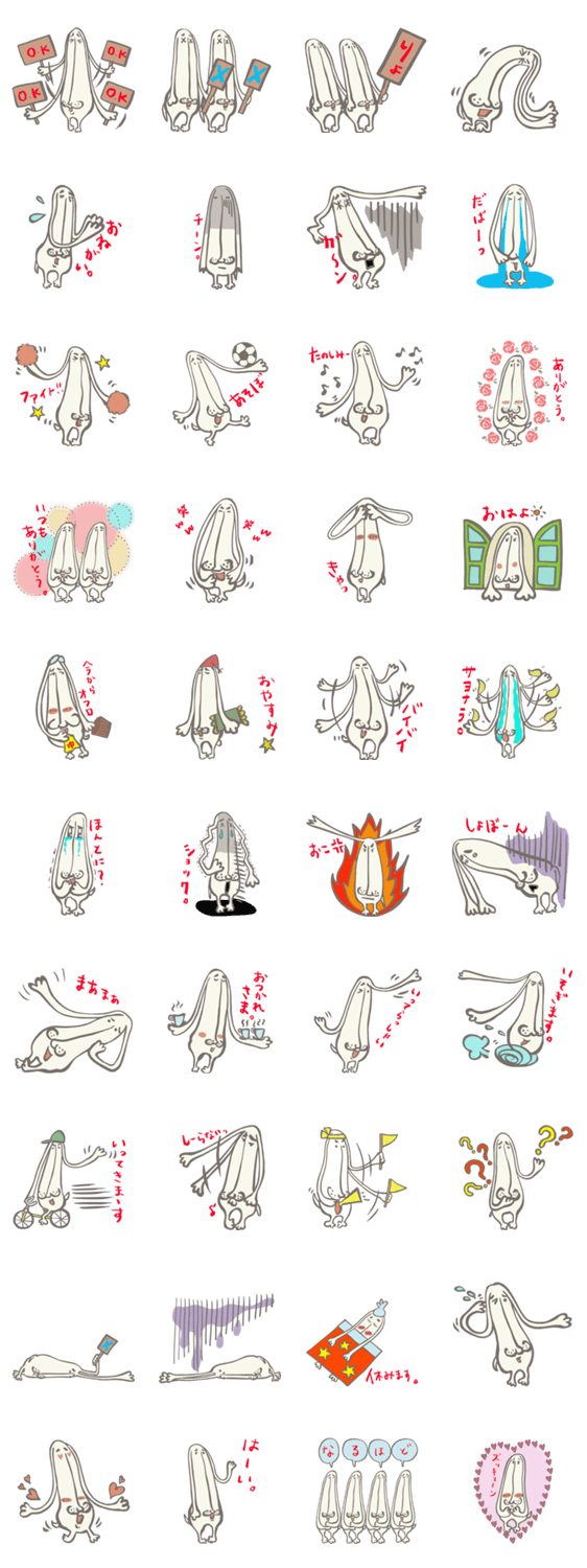 なんとなく耳がのびてしまった白い犬の、日常で使えるゆるくてかわいいスタンプです。