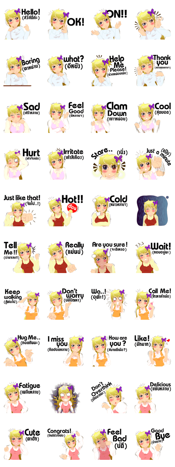 Cartoon lady cute language Thai/eng -LINEスタンプマニア