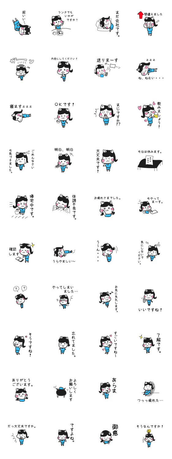 白ネコのあいうえお・・・ってるスタンプ