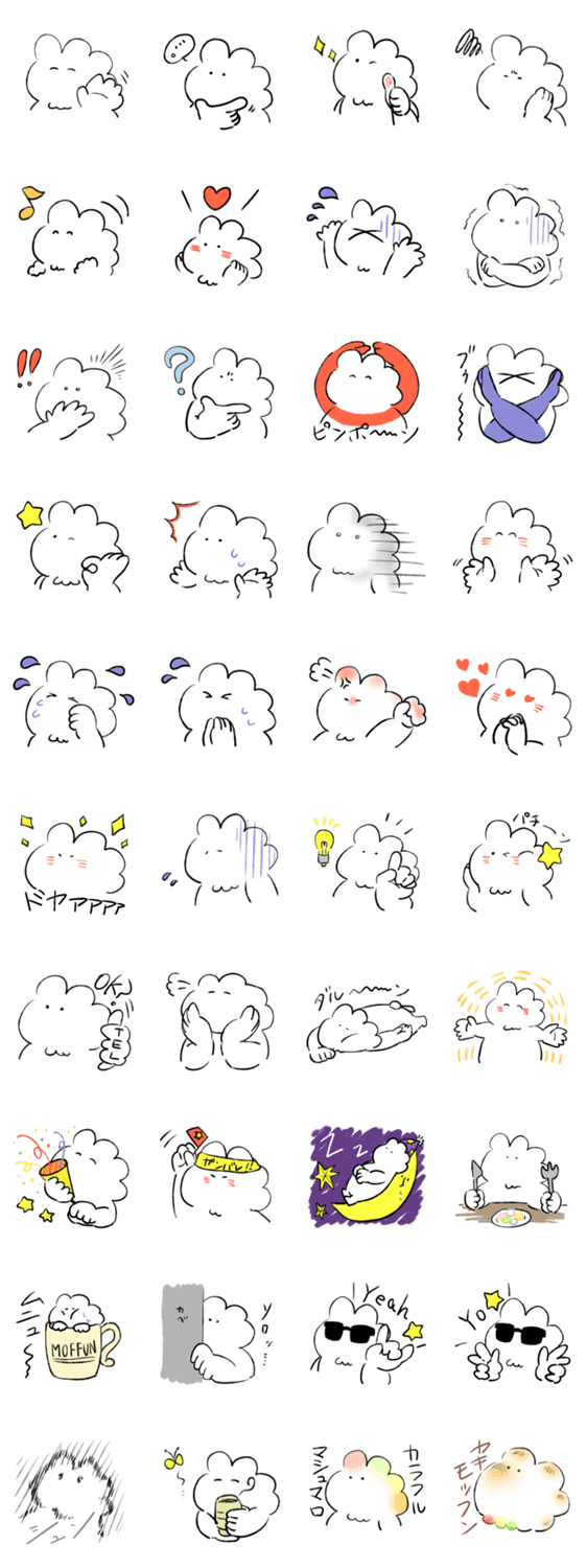 マシュマロの妖精もっふんスタンプ。もふもふ、むちむちです。