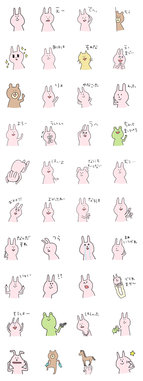 ちょっぴりやる気のないうさぎさんとそのなかよしなおともだちのスタンプです。