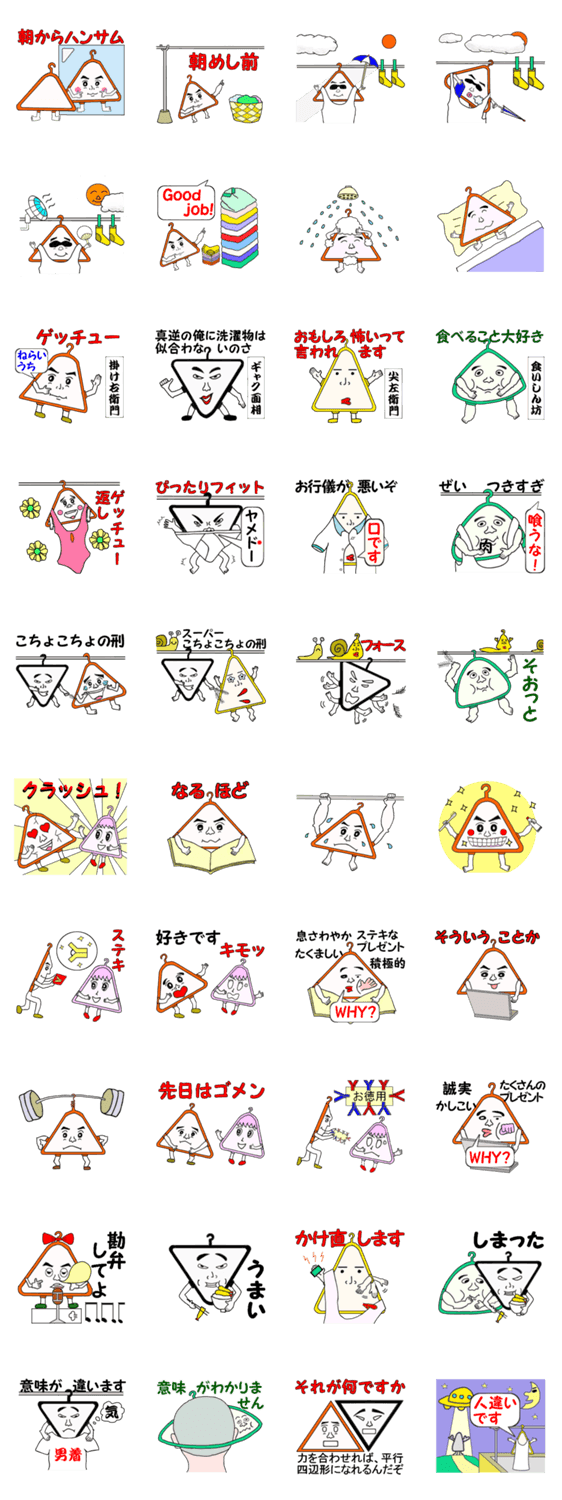 ハンガーの妖精”掛け右衛門”と愉快な仲間達の日常を描いたスタンプです。
