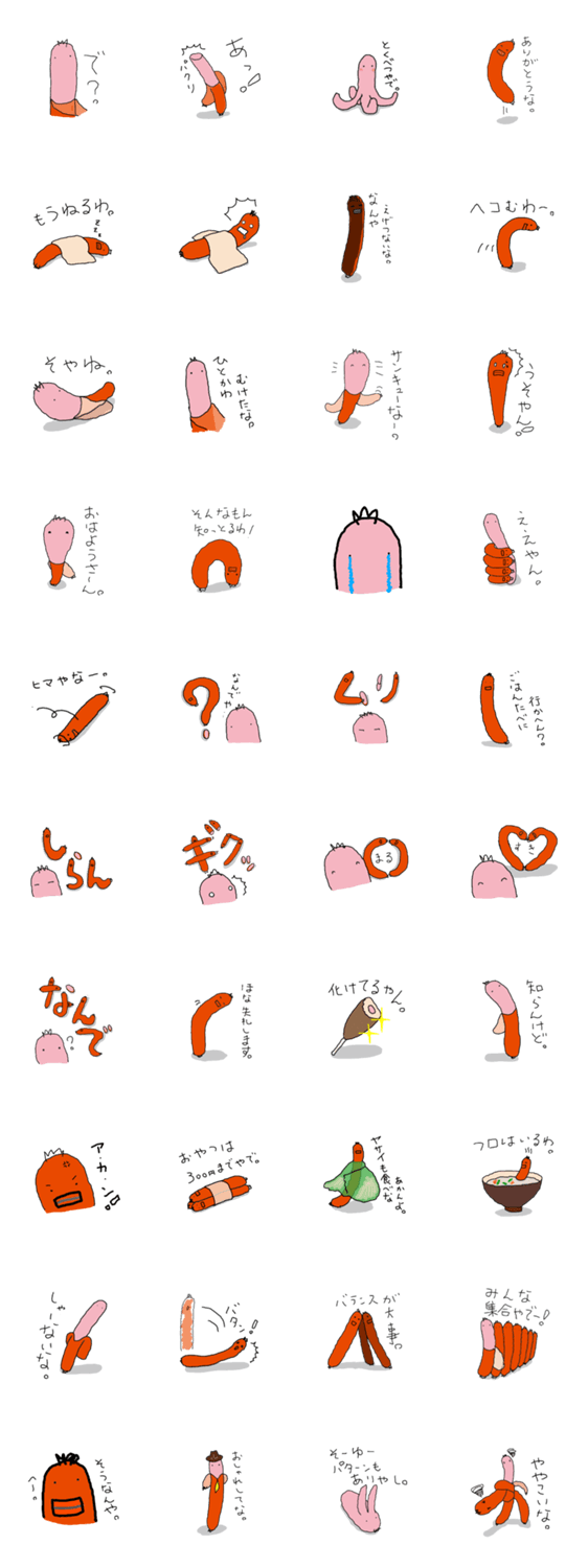 | スタンプ説明 | 誰もが知ってるぎょにそクン!魚肉ソーセージのぎょにそくんが大阪弁のスタンプになりました。わりとヘルシー!なつかしの味を召し上がれ。 |