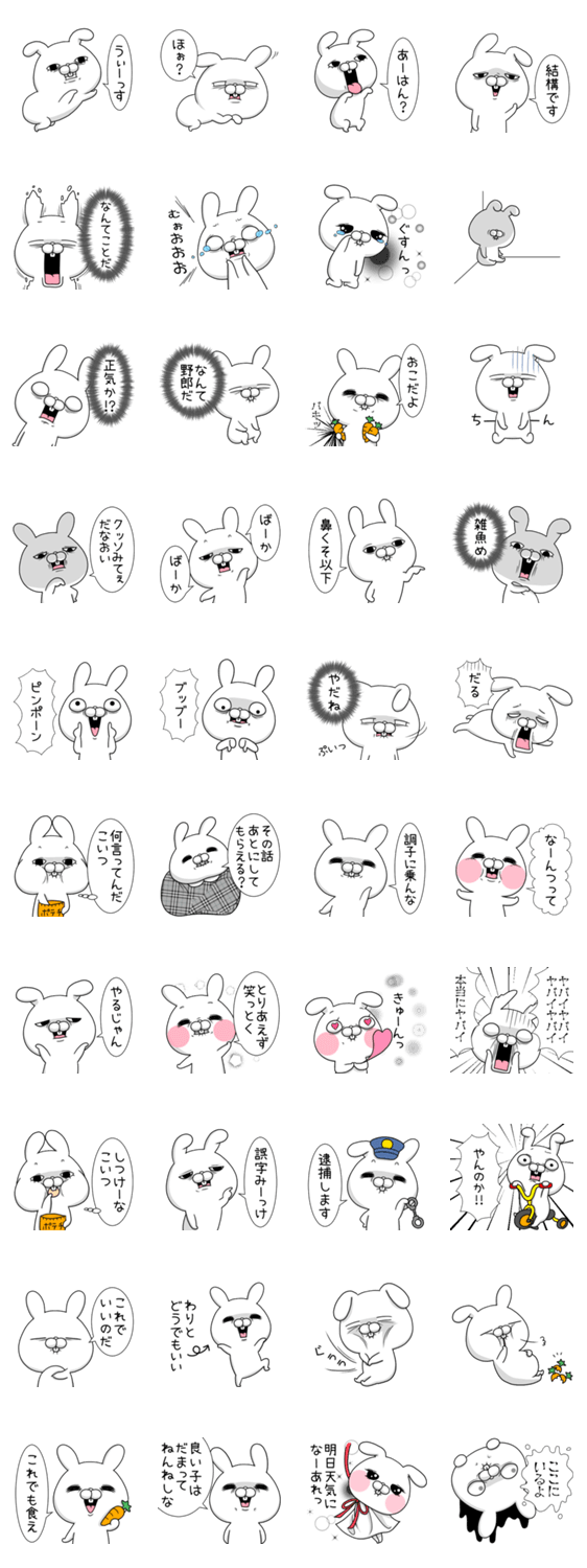 毒舌で表情豊かなうさぎのスタンプです。可愛い顔で毒を吐きます。セリフは吹き出しでマンガっぽく仕上げています。