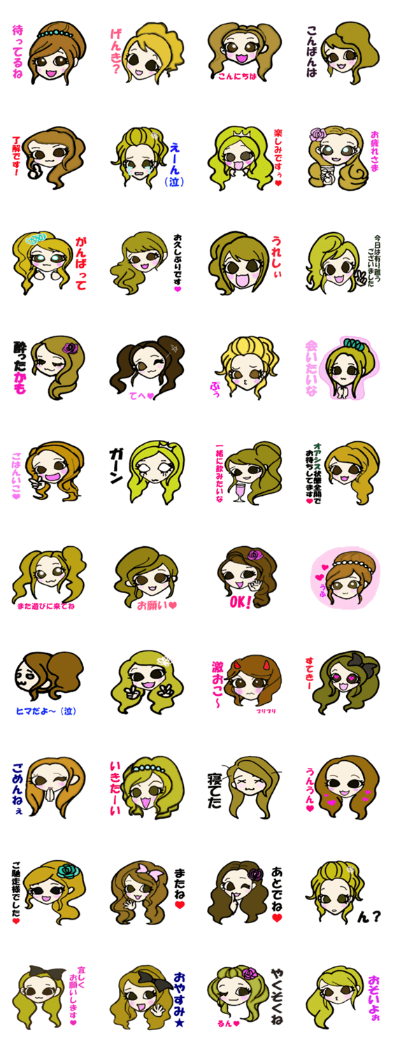 笑顔の可愛いキャバ嬢さん用のスタンプです。おねだり上手なプリティガールも使ってね。
