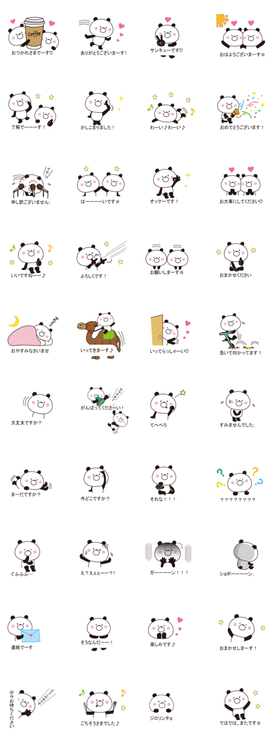よく使う言葉を集めたとっても使えるかわいいパンダさんのスタンプです。
