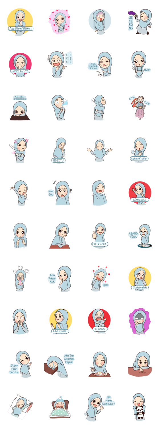 | スタンプ説明 | Bila is very active and cheerful, she also always look beautiful with her hijab, Let her decorate your chat rooms with her cute expression! |