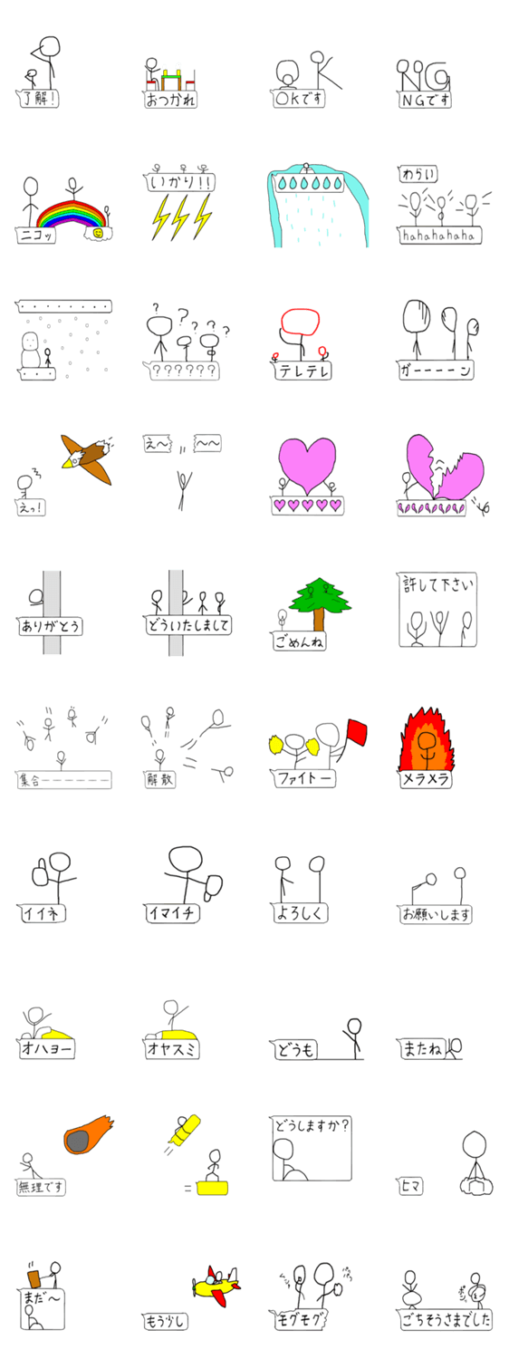 棒人間の吹き出しスタンプ第2弾です。日常によく使う言葉が中心です。背景は白以外がおすすめです。