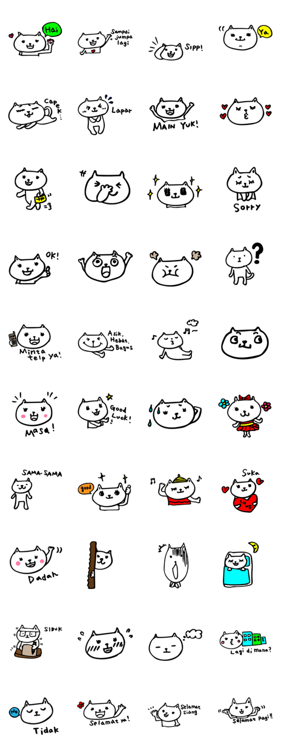 キュートな、ねこスタンプ。インドネシア語、日本語、英語で表現♪