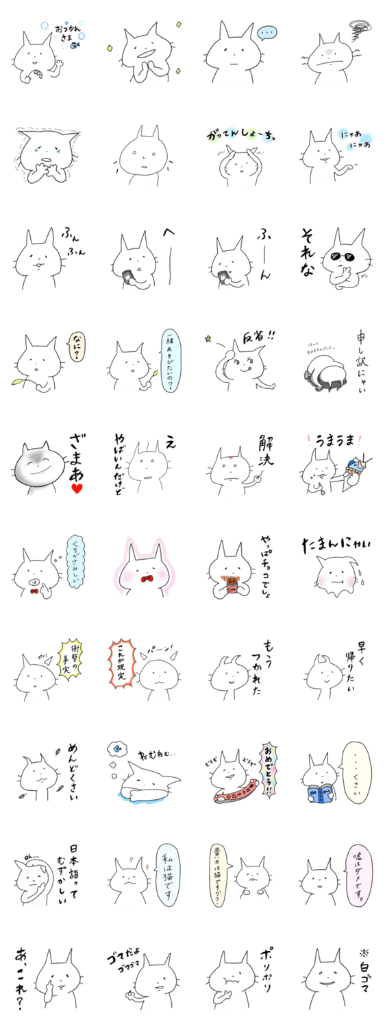 白野 猫のマイペースな日常スタンプ 1 -LINEスタンプマニア