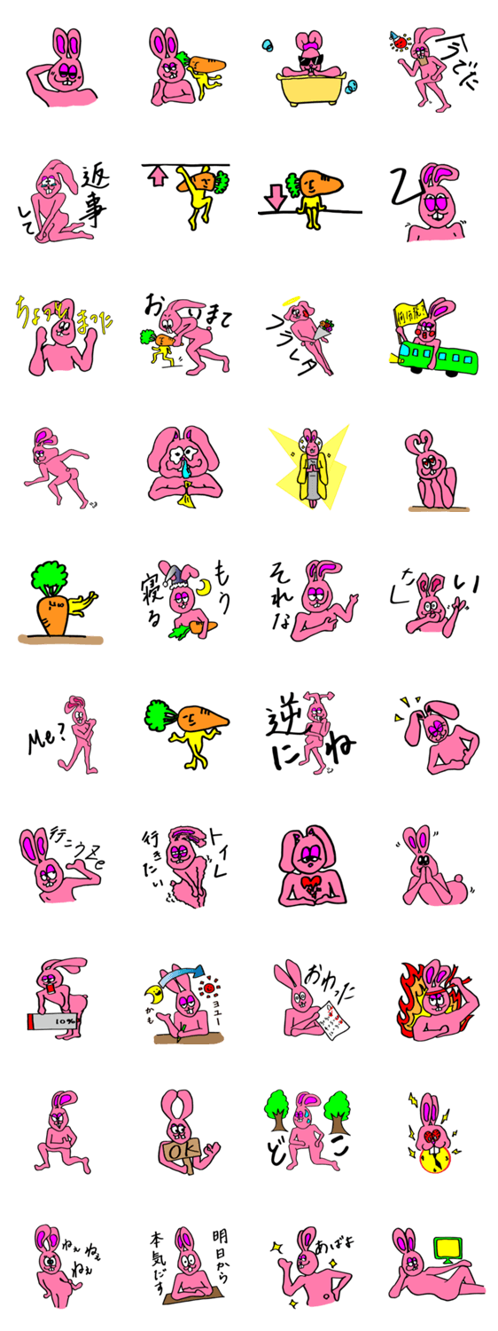 | スタンプ説明 | うざいけど、なぜか許せるお尻が特徴的なウサギが誕生しました!現代を活発に生きる若者に向けたスタンプです。仲の良い友人やグループとの会話に是非! |