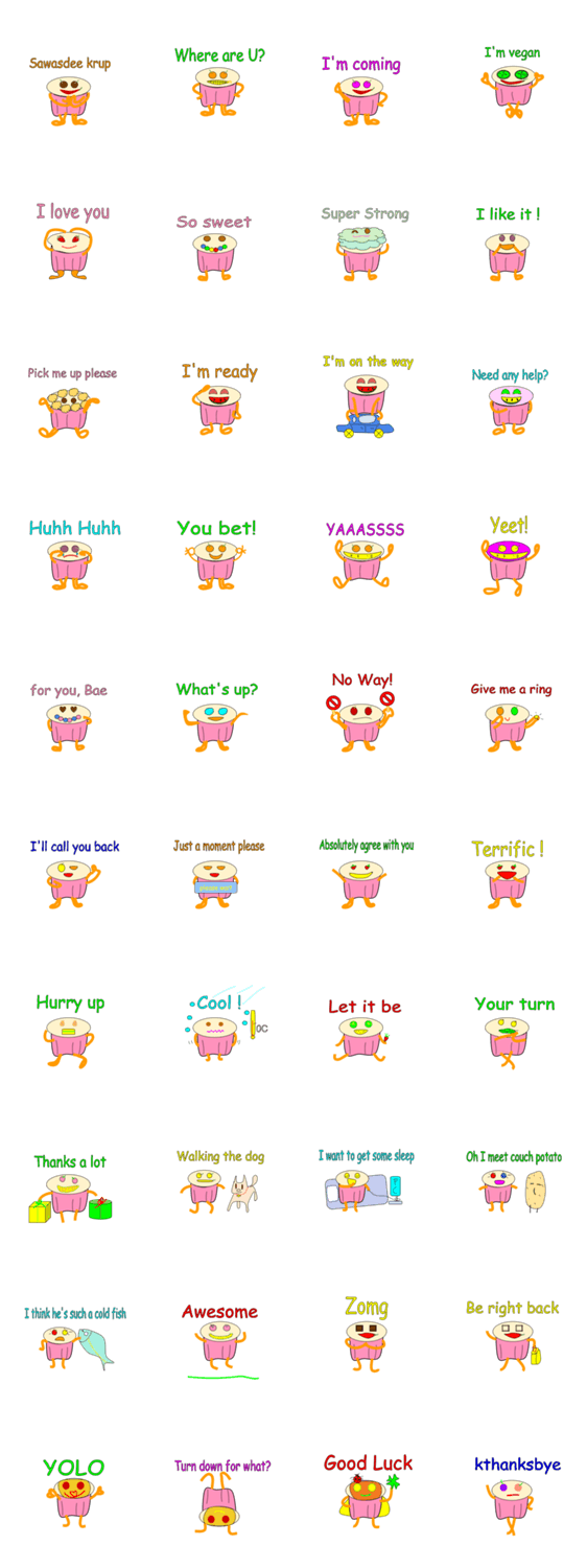 | スタンプ説明 | The animated cupcake named Keki with many decorations on top can talk as you'd like. Enjoy using line with Keki now. |