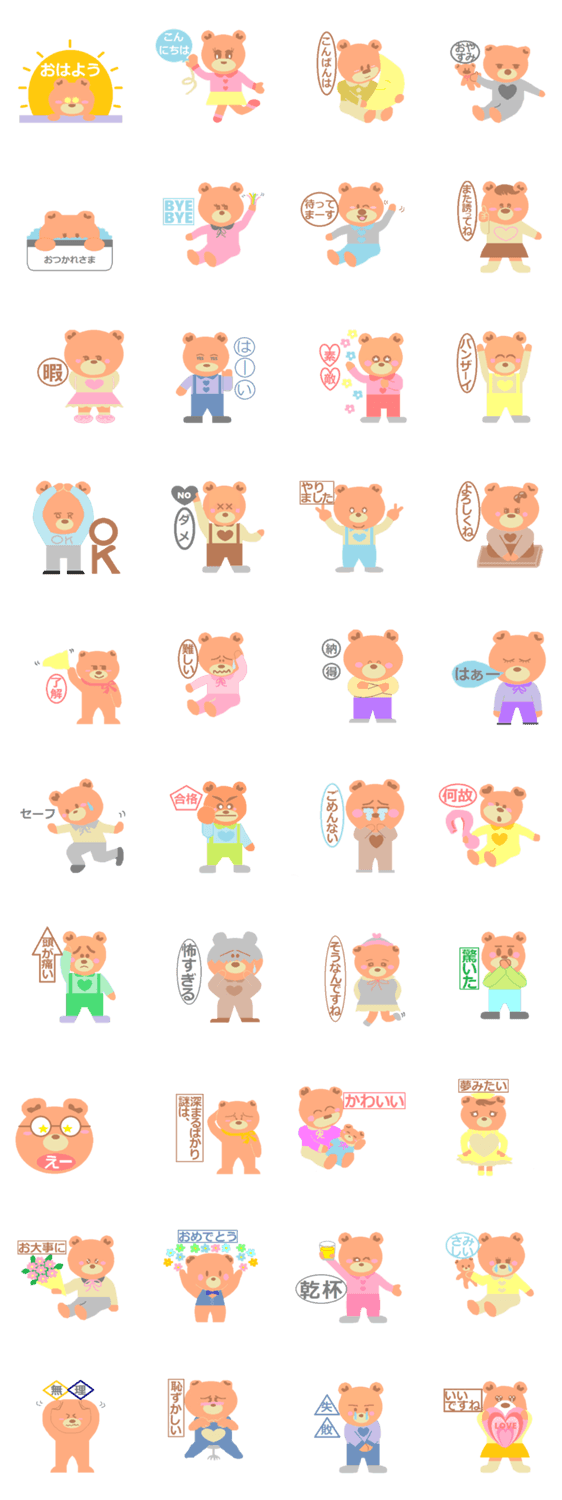 | スタンプ説明 | クマさんの日常の使いやすいスタンプを落ち着いた色で作りました。 |