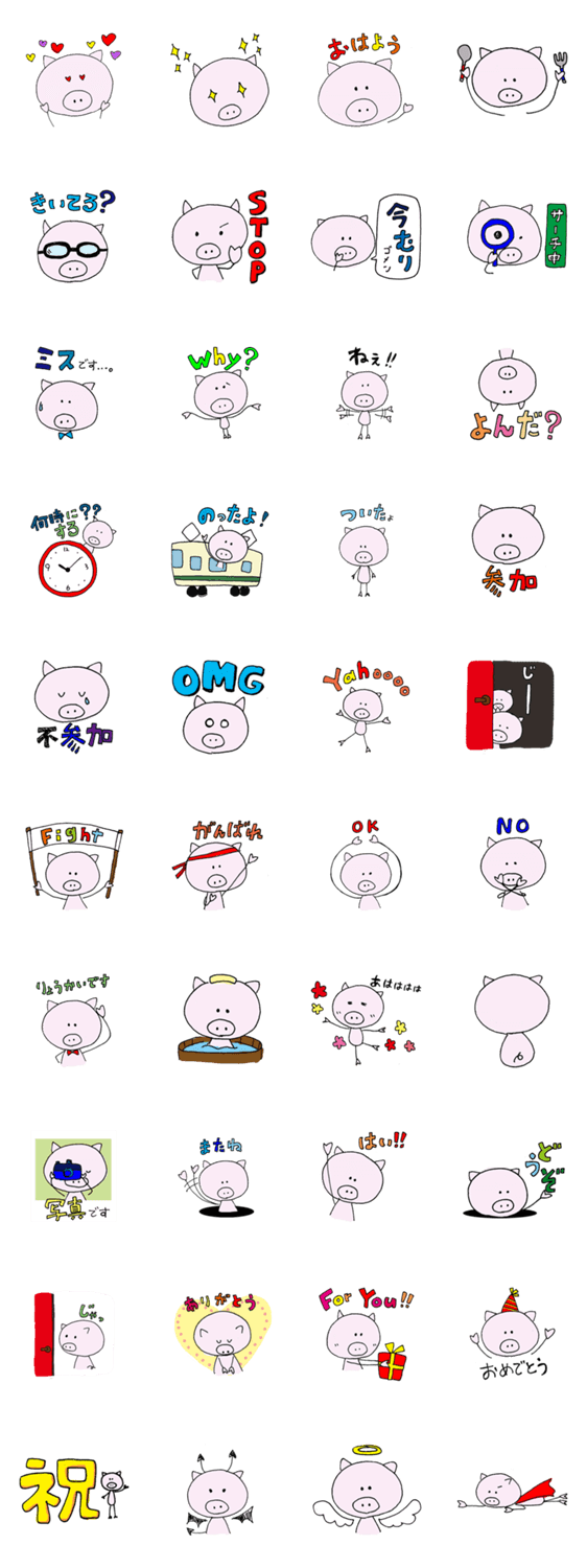 スタンプ説明 ブタのぶぅちゃんの手描きスタンプです!