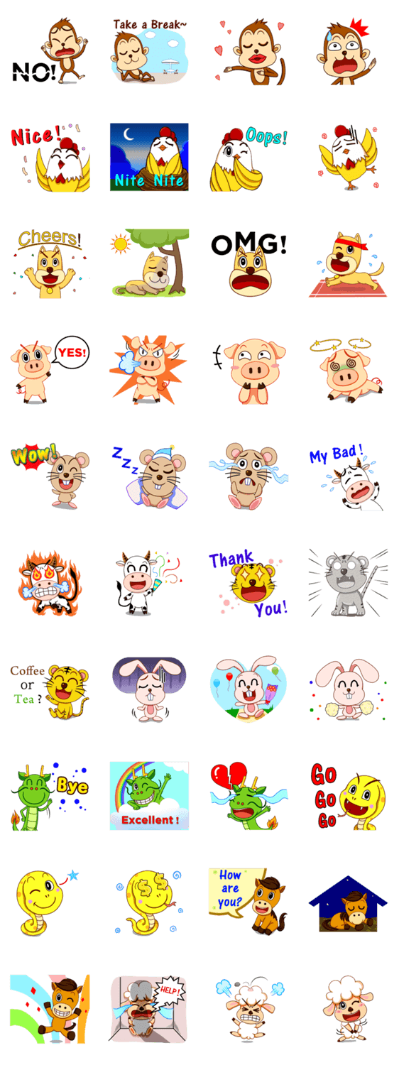 | スタンプ説明 | Based on Chinese zodiac, the 12 characters are cute and with fun filled expressions! |