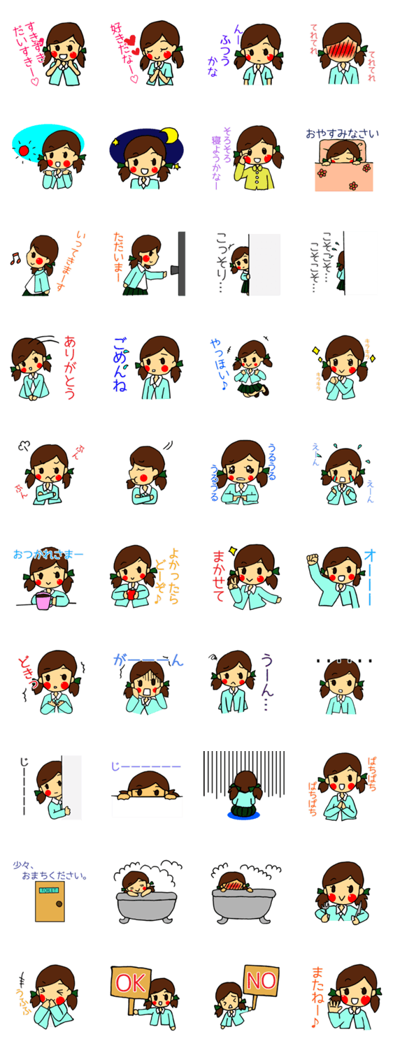 頬がリンゴ色にいつも染まってる「りんごのほっぺ」ちゃんの日常スタンプ