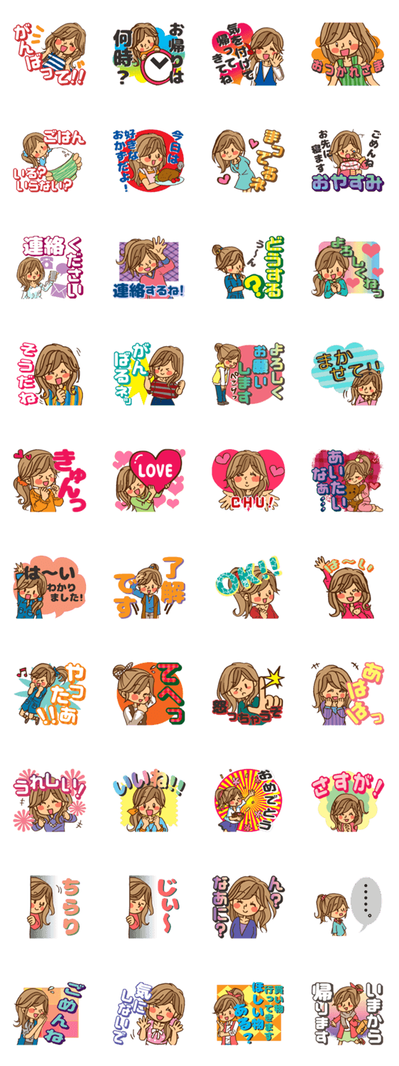 旦那さんや恋人に送る、使えるラブラブ・連絡用スタンプです。ハートでかわいいスタンプや励ましたり気遣ったりできるスタンプで、愛され女子を目指しましょう!