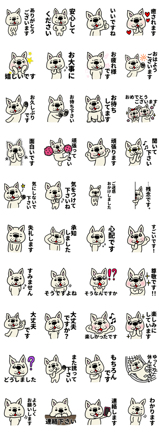 ブサカワ犬☆フレンチブルドッグ、フレブルちゃんのゆる敬語スタンプ!先輩や同僚など礼儀正しく気持ちを伝えたい時に是非どうぞ☆ゆる敬語なので使いやすいです♪memeの森