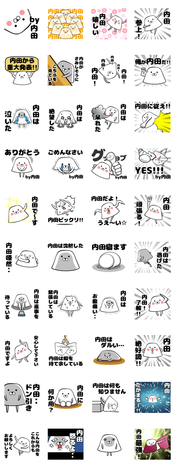 『私専用』シリーズ第22弾!!全国の内田(うちだ)さんにオススメのスタンプです。杏仁豆腐?プリン?風の生き物が内田さんの気持ちを代弁してくれます。