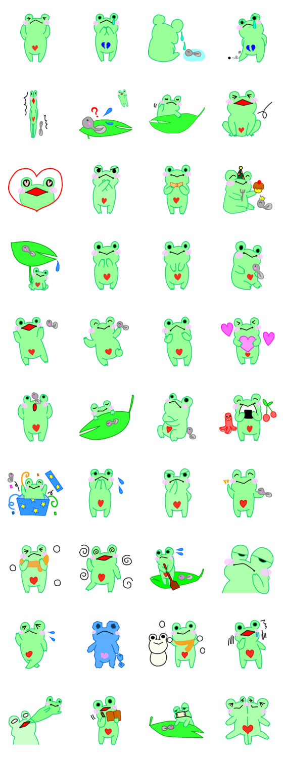 カエルのスタンプ かわいいかえるがいろんなポーズをとっています。文字はあえて無しにしているので、いろいろな場面で使って下さい!