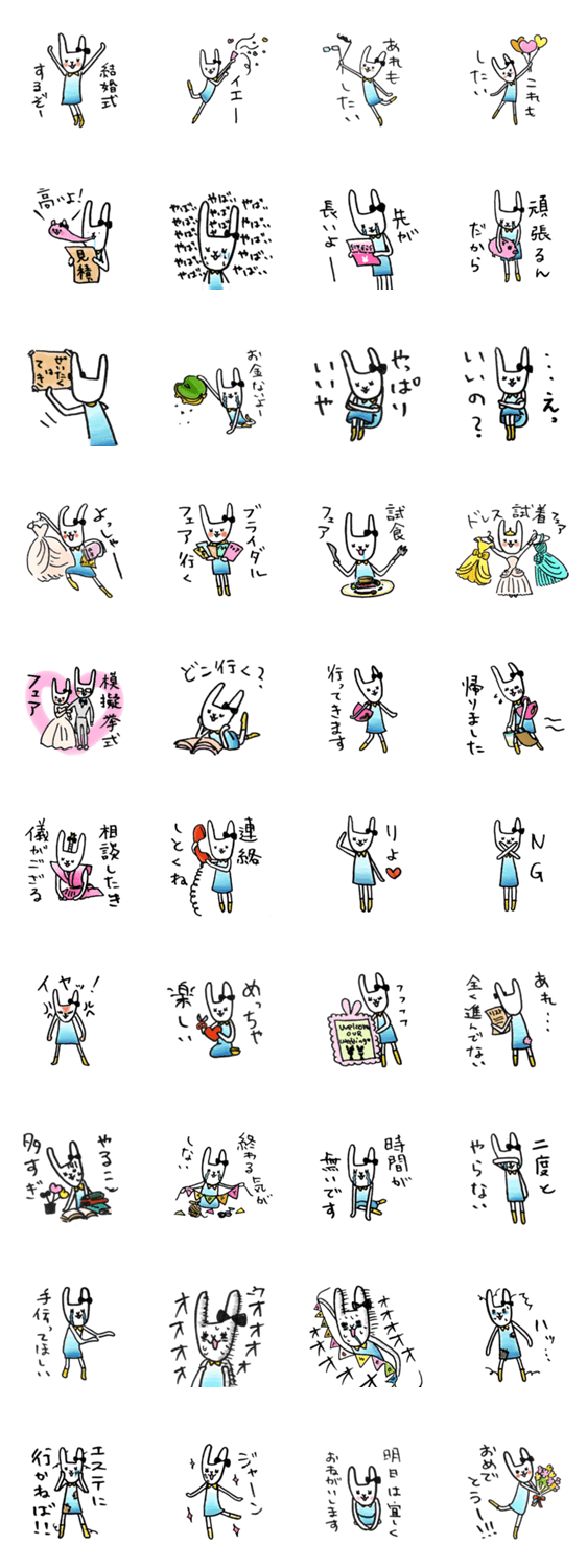 結婚式の準備のやり取りに使えるスタンプです!ぴょん子と一緒にワクワクしてください!