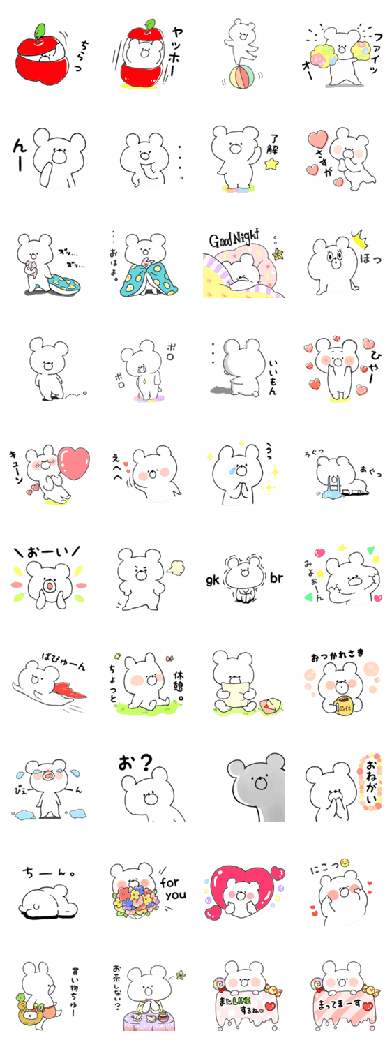 なんだかほっこりして、ともだちや、家族、カップルと幅広く使いやすい、カワイイクマのスタンプです!毎日の会話に添えてみてください。