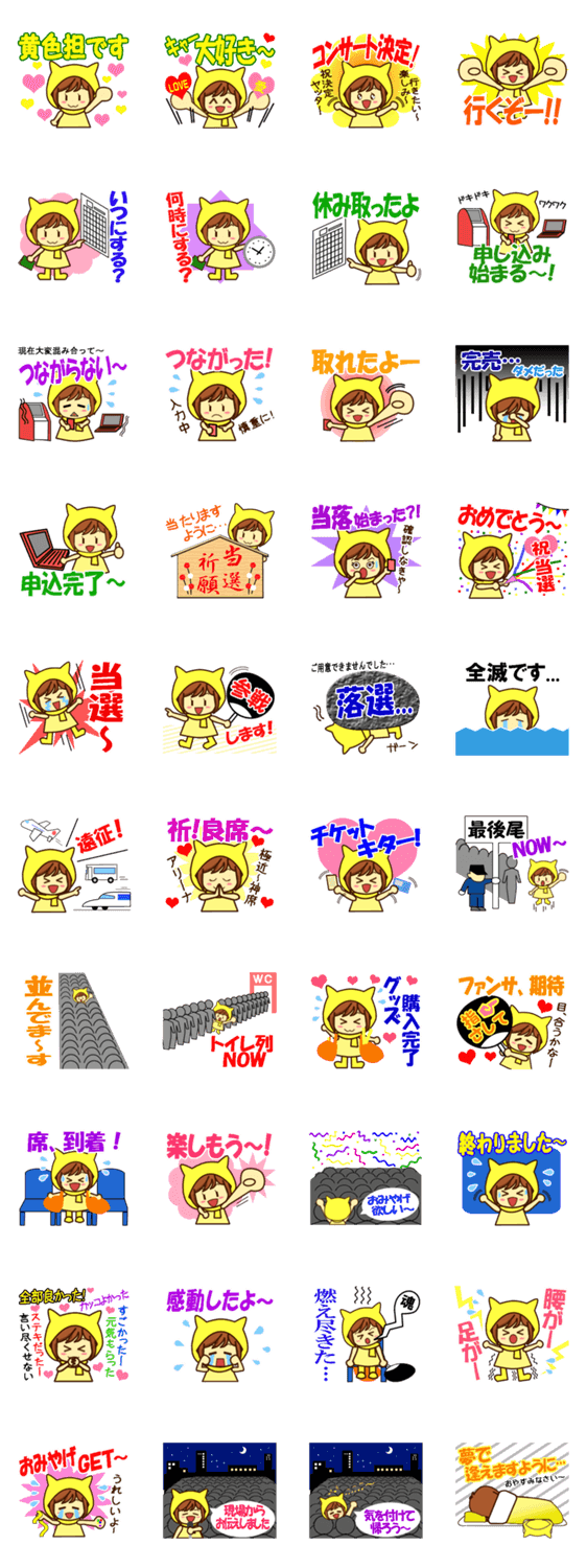 黄色担当アイドルファン コンサートに行く -LINEスタンプマニア