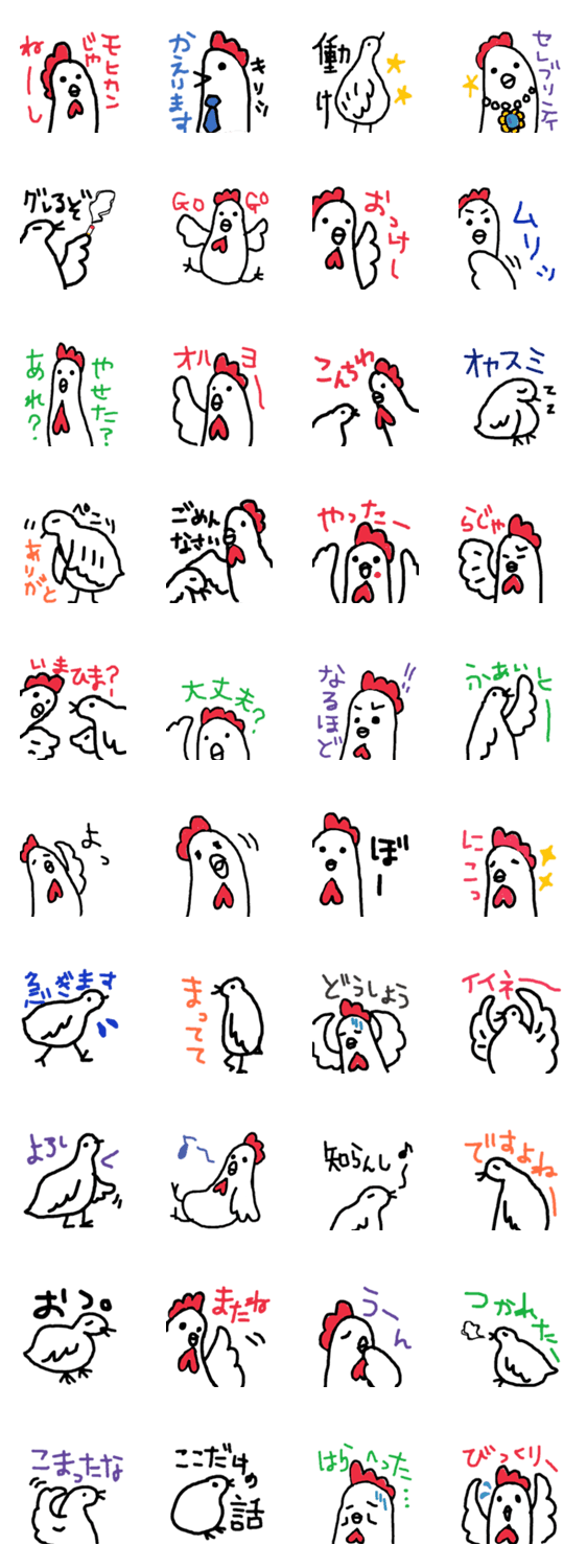 手描きばればれのゆるいにわとりとうずらスタンプです