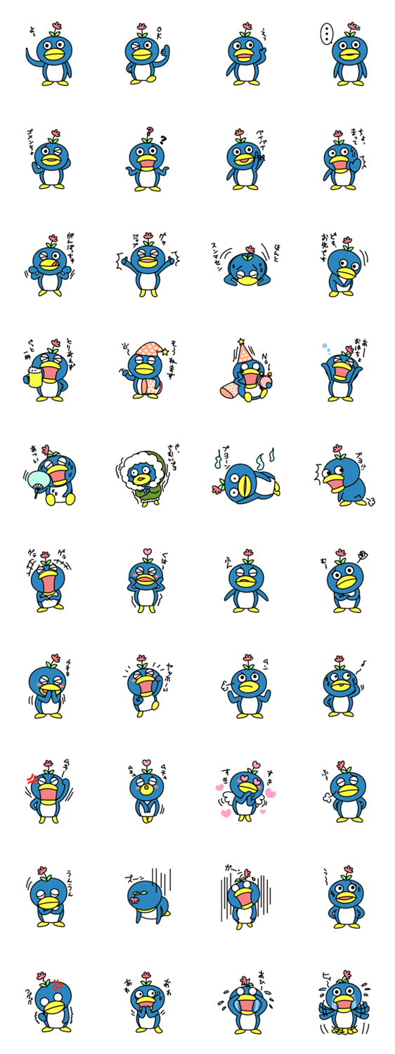 お山で暮らすペンちゃん。いつのまにか頭に花が咲いていたが手が届かないので放置している。たまに出る口癖は「ブヨ」。