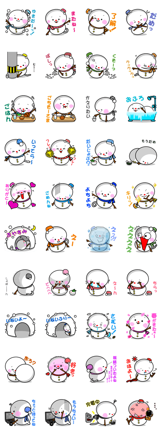 可愛い「ネコみたいなゆきだるま」のスタンプがついに登場♪心温まるスタンプを使ってLINE会話をさらに楽しくしちゃおう!いっぱい使ってトークをかわいく演出してみてね☆