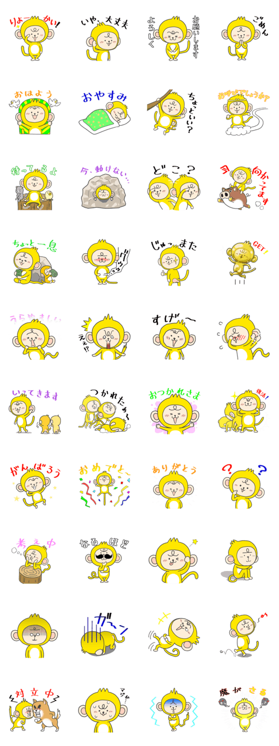 黄色のパワーで金運を呼ぶきいろサルスタンプ。幸福幸運をどうぞ。