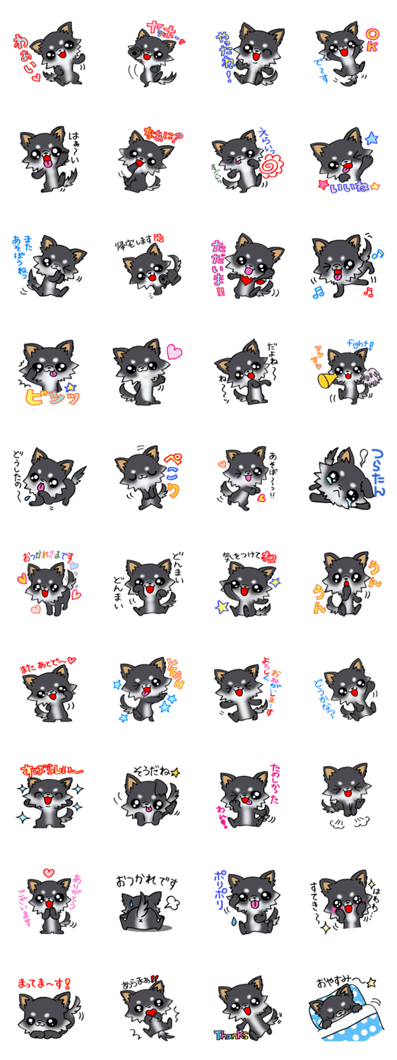 ブラックにホワイトタンのかわいいチワワのスタンプです♪愛犬家の方へ!チワワ好きな方へ♪